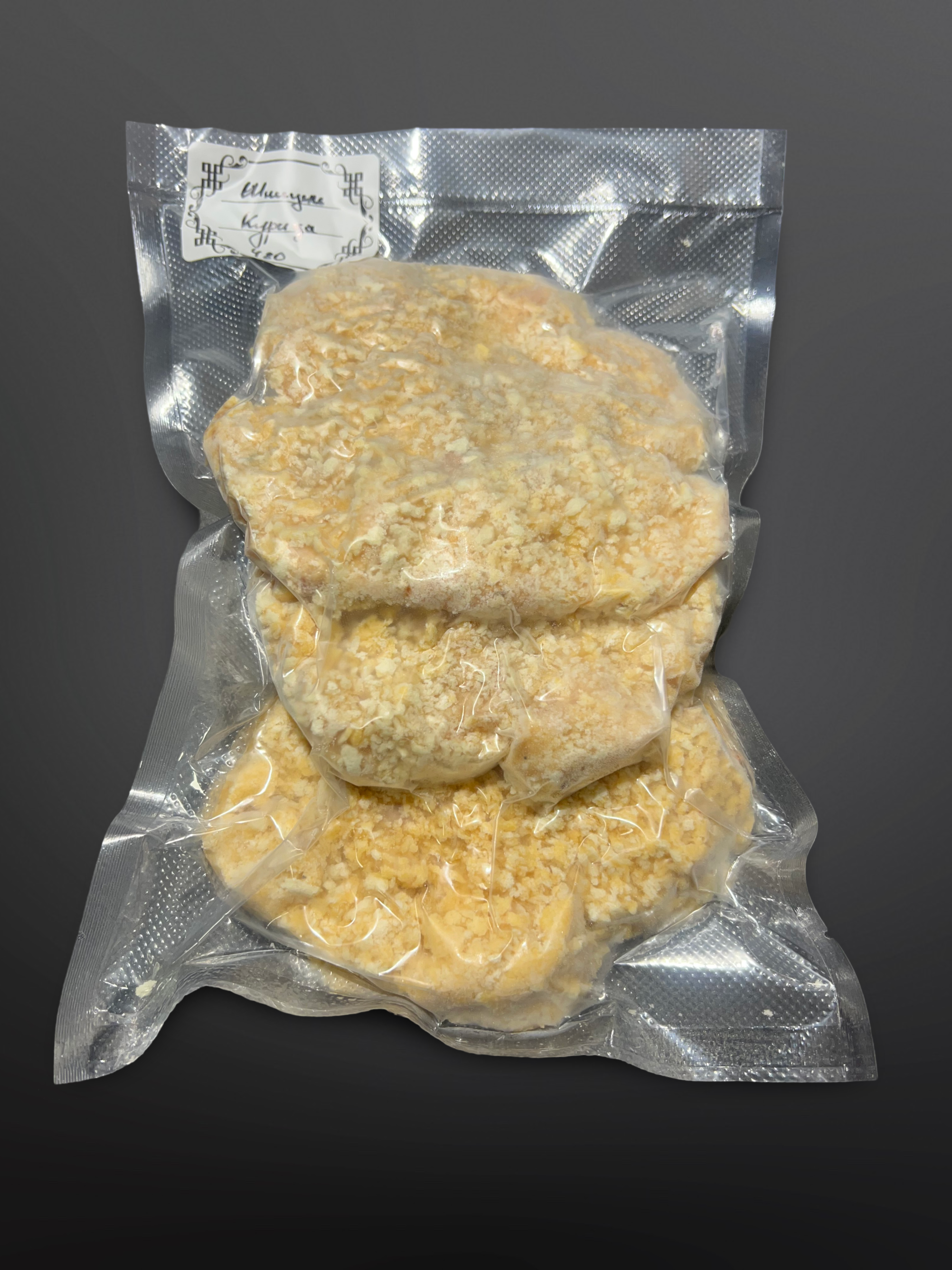 • Воздушная хрустящая корочка: Панировочные сухари и специи создают аппетитный хруст, а внутри — нежнейшее куриное филе, тающее во рту.